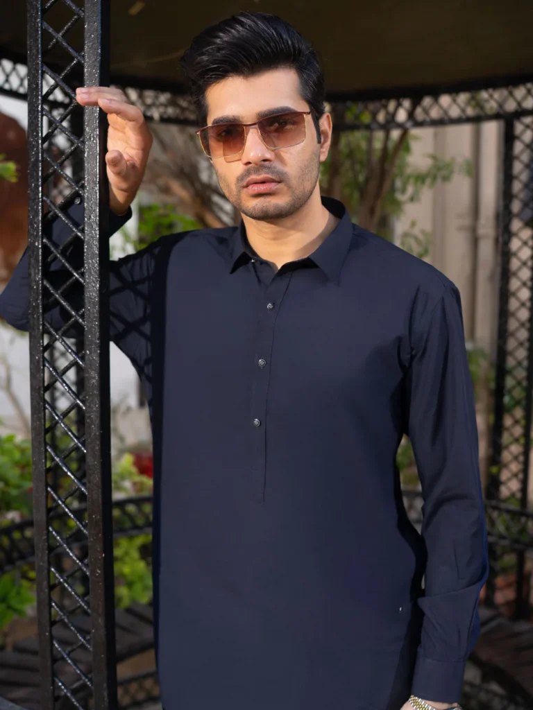 Navy Blue Plain Exclusive Range Designer Shalwar Kameez (SK-550)